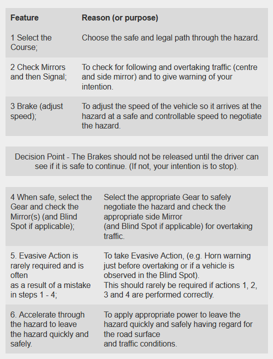 The method of driving which is described here is taken from The Driving Companion and is the safest and most efficient way to drive a motor vehicle. When you undertake either the VORT or the CBT&A course you will be expected to drive in this manner when approaching and negotiating road and traffic hazards or other dangerous situations.
